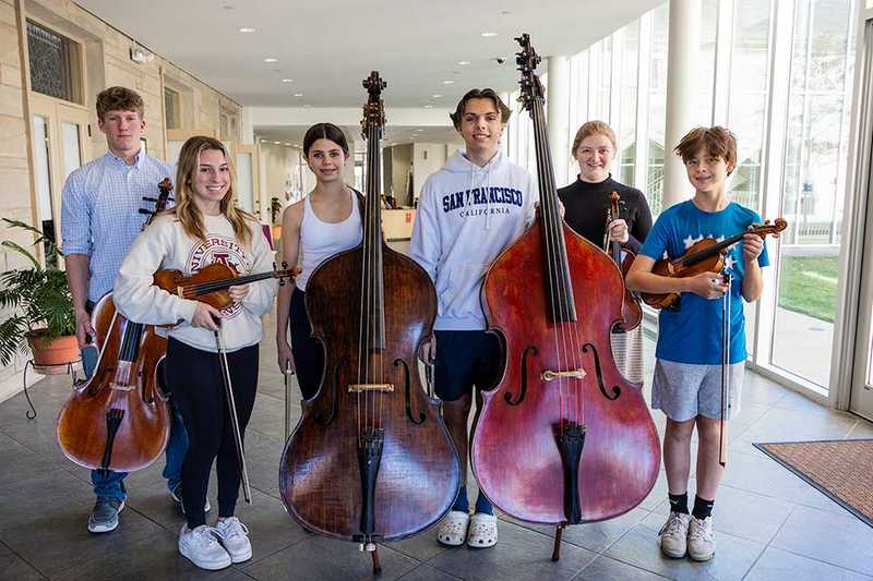From left: Sam Hart, cellist; Anna Enger, violin; Anabel Espinal, bass; Quinn Judge, bass: Madeleine Davis, violin; Evan Ragland, violin.